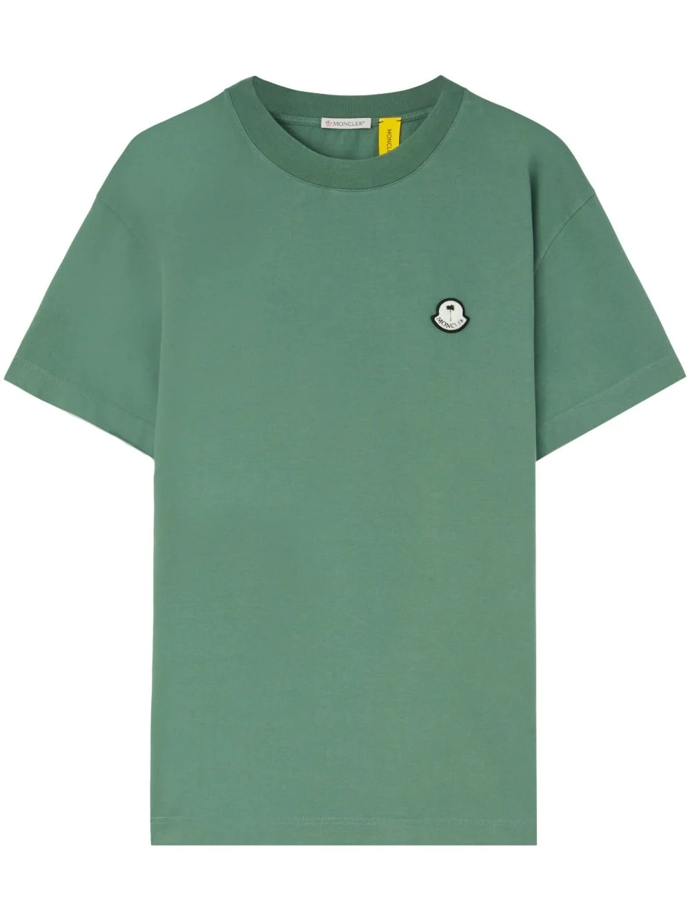 x Moncler logo-appliqu� cotton T-shirt Palm Angels joins forces with Moncler to reimagine the classic T-shirt with a distinctive twist. It’s cut from green cotton and appliqued with a contrasting crest that combines both brands’ signature motifs. Highlights - Apple green - Cotton - Logo patch at the chest - Crew neck - Short sleeves - Straight hem Imported Composition Cotton 100% Washing instructions Read Manufacturer Guidelines