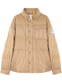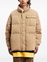 x Moncler logo-applique puffer jacket Palm Angels and Moncler team up once again to present the Fieldrush puffer jacket. Crafted in Italy, it arrives in an understated beige hue and is defined by its quilted construction. In signature Moncler fashion, a logo patch adorns the left sleeve – this time nodding towards the collaborative nature of the piece. Highlights - Beige - Cotton - Padded design - High neck - Front press-stud and zip fastening - Long sleeves - Logo patch at the sleeve - Chest flap pocket - Straight hem - When buying this unisex item, keep in mind that it is graded in standard men's sizing Imported Composition Outer: Cotton 100% Lining: Polyamide 100% Washing instructions Read Manufacturer Guidelines