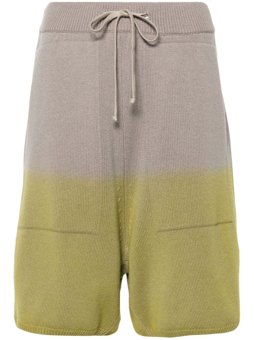 x Rick Owens knitted shorts Highlights - Light grey, apple green - Cashmere - Knitted construction - Ombre effect - Two side slit pockets - Side slits - Two rear patch pockets - Logo patch to the rear - Authenticity qr code - Elasticated drawstring waistband Made in Italy Composition Cashmere 100%