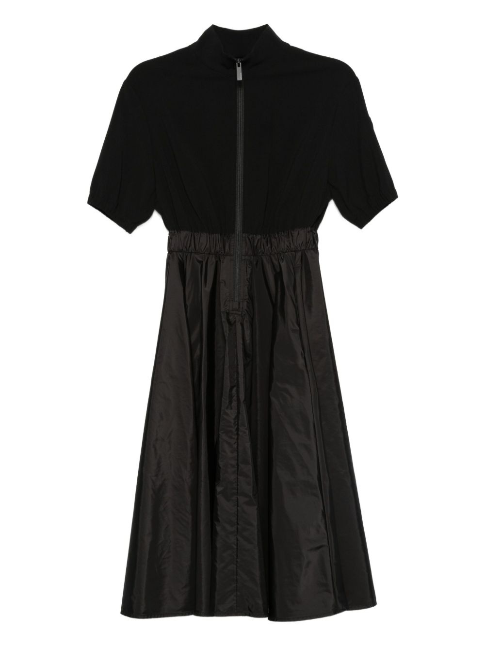 zip-up pleated midi dress