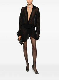 georgette mini dress Highlights - Black - Semi-sheer finish - Draped detailing - Long sleeves Made in Italy Composition Viscose 100% SIZE & FIT Model measurements Height 5 ft 9 in(1.76 m) Bust/Chest 31.88 in(81 cm) Hips 35.43 in(90 cm) Waist 24.8 in(63 cm) Washing instructions Dry Clean Only
