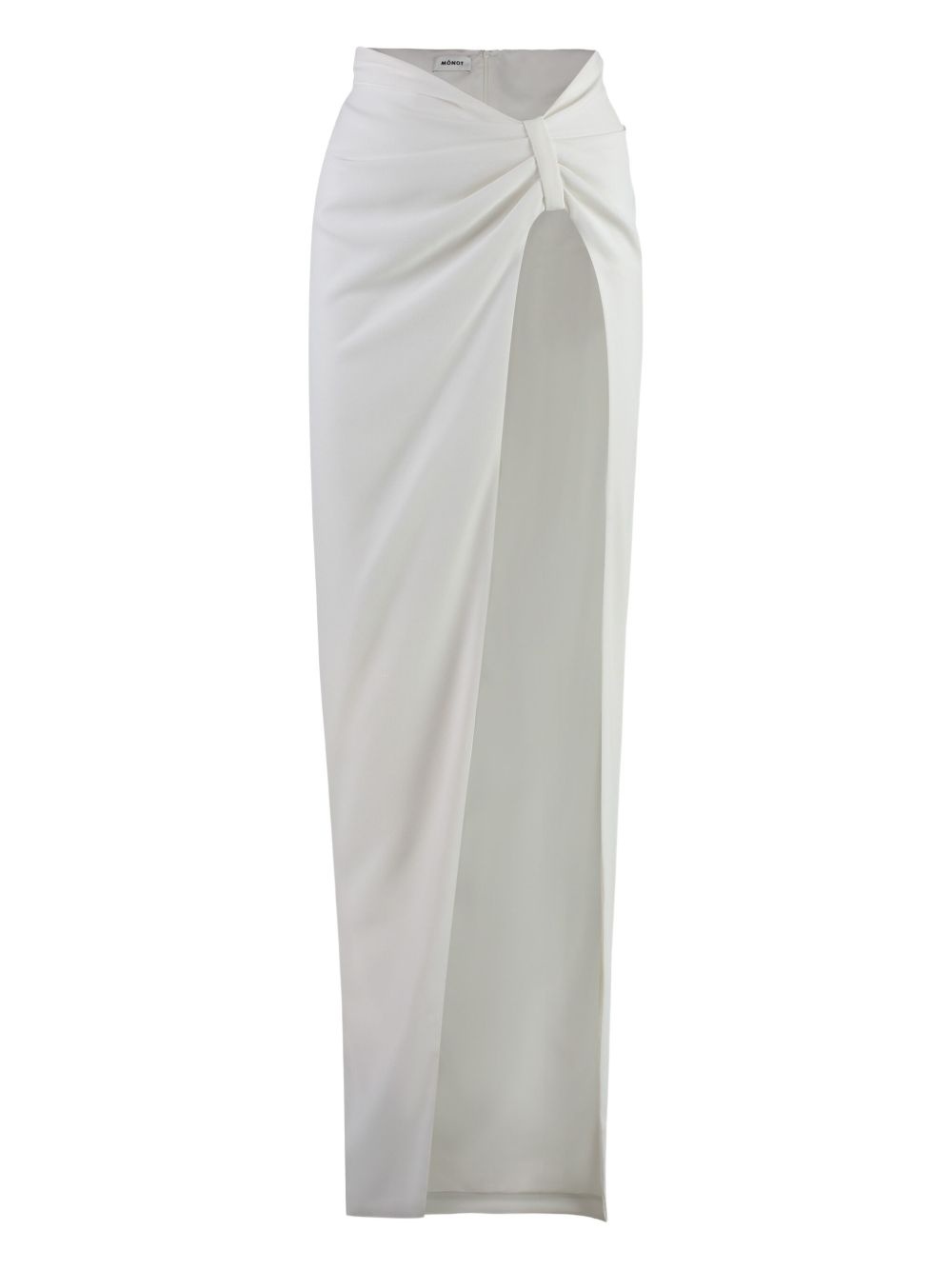 Torpedo twist-detail maxi skirt Highlights - Off-white - Twist front design - Thigh-high slit - Sleek silhouette - Hidden zip closure - Smooth finish Imported Composition Polyester 100% SIZE & FIT FittingInformation Designed with an asymmetric hem, this skirt is intended to be worn just below the waist Made from a midweight non-stretch fabric, this piece offers minimal elasticity when worn