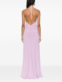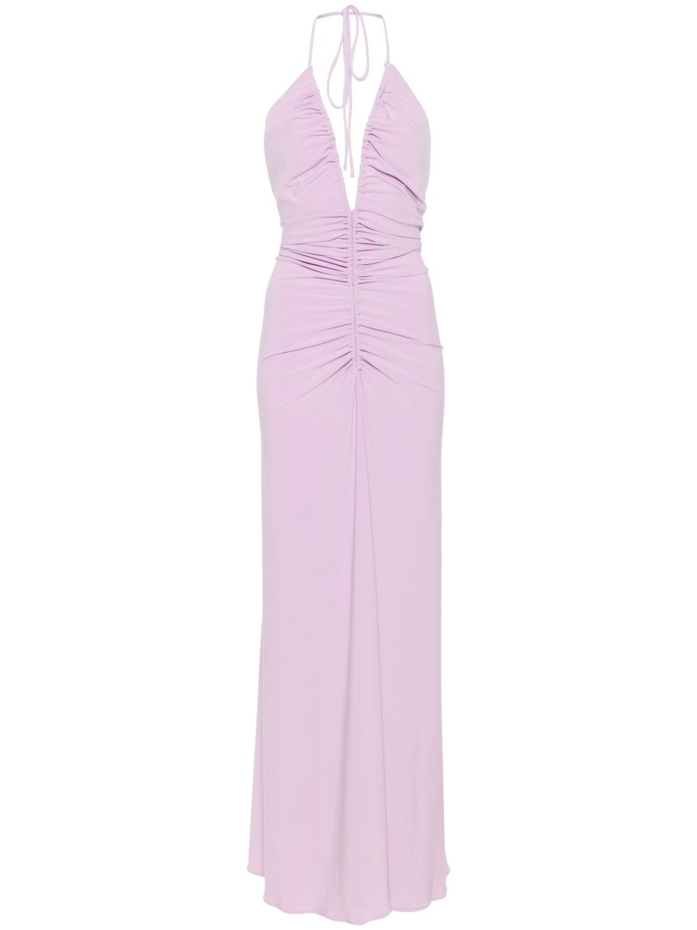 V-neck draped maxi dress Highlights - Lavender purple - Halterneck tie fastening - Sleeveless - Low back - Ruched detailing Imported Composition Polyester 95%, Elastane 5% SIZE & FIT Model measurements Height 5 ft 9 in(1.76 m) Bust/Chest 31.1 in(79 cm) Hips 36.61 in(93 cm) Waist 24.8 in(63 cm) FittingInformation Designed for a slim fit that sits just away from the body offering a close yet comfortable fit Made from a midweight stretch fabric, this piece offers elasticity and flexibility when worn