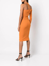 asymmetric knitted dress carrot orange stretch-wool ribbed knit asymmetric neck halterneck tie fastening one-shoulder pencil silhouette straight hem mid-length Imported Composition Body: Wool 95%, Elastane 5% SIZE & FIT Model measurements Height 5 ft 10 in(1.77 m) Bust/Chest 33.85 in(86 cm) Hips 35.03 in(89 cm) Waist 24.01 in(61 cm) Measurement SLEEVE LENGTH 25.51 in(64.8 cm) HIPS 24.01 in(61 cm) LENGTH 42 in(106.7 cm) WAIST 22 in(55.9 cm) BUST 25.98 in(66 cm) FittingInformation This piece fits true to size. We recommend you get your regular size Cut for a close fit Made with a mid-weight fabric