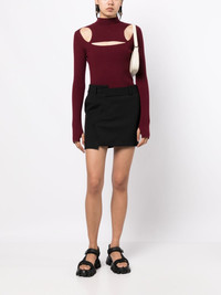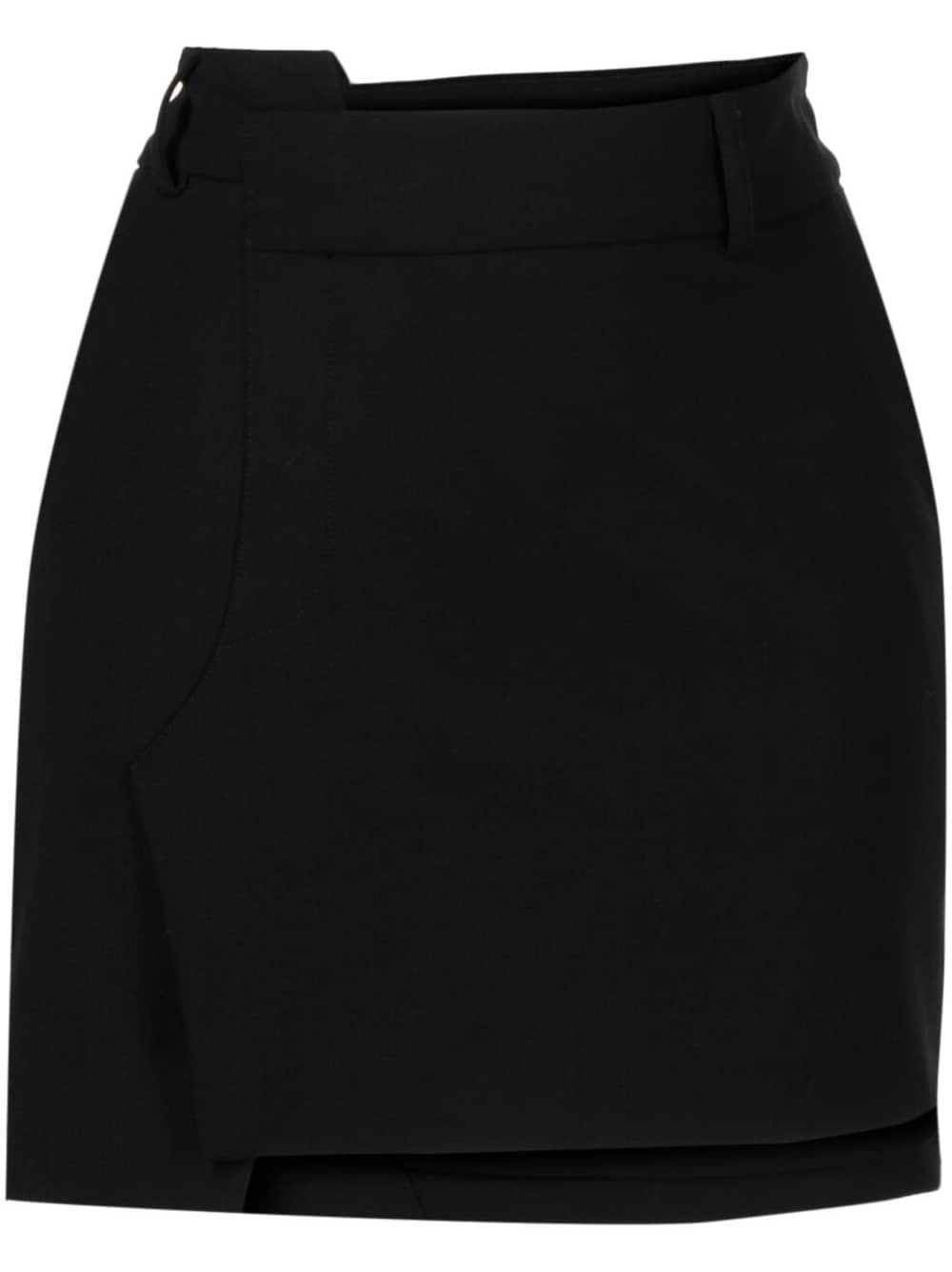 asymmetric mini skirt Highlights - Black - Asymmetric design - Belt loops - Concealed front fastening - Two rear welt pockets Made in United States Composition Outer: Rayon 50%, Polyester 45%, Elastane 5% Bottoms: Wool 95%, Elastane 5% SIZE & FIT Model measurements Height 5 ft 10 in(1.77 m) Bust/Chest 31.49 in(80 cm) Hips 35.43 in(90 cm) Waist 25.19 in(64 cm) FittingInformation This mini-length skirt is intended to be worn low on the hips Made from a lightweight non-stretch fabric This piece fits true to size – take your usual size Washing instructions Dry Clean Only