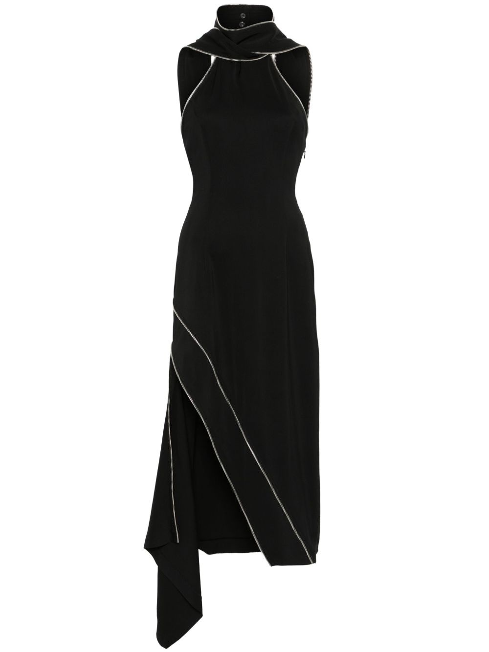 decorative-zip midi dress Highlights - Black - Concealed side zip fastening - Halterneck - Sleeveless - Draped detailing Imported Composition Viscose 93%, Spandex/Elastane 7%