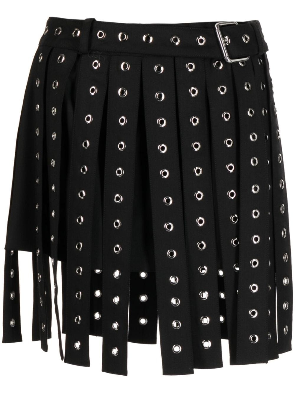 eyelet-detailing asymmetric skirt Highlights - Black - Metal eyelet detailing - Asymmetric design - High-waisted - Belted waist - Belt loops - Thigh-length Made in United States Composition Acetate 100% SIZE & FIT Model measurements Height 5 ft 10 in(1.77 m) Bust/Chest 31.49 in(80 cm) Hips 35.43 in(90 cm) Waist 25.19 in(64 cm) FittingInformation The belt offers adjustability for fitted preferences Washing instructions Dry Clean Only