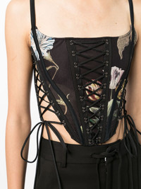 graphic-print lace-up corset