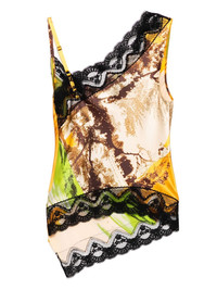 lace-trim top Highlights - Light brown - Single shoulder strap - Sleeveless Imported Composition Silk 100%
