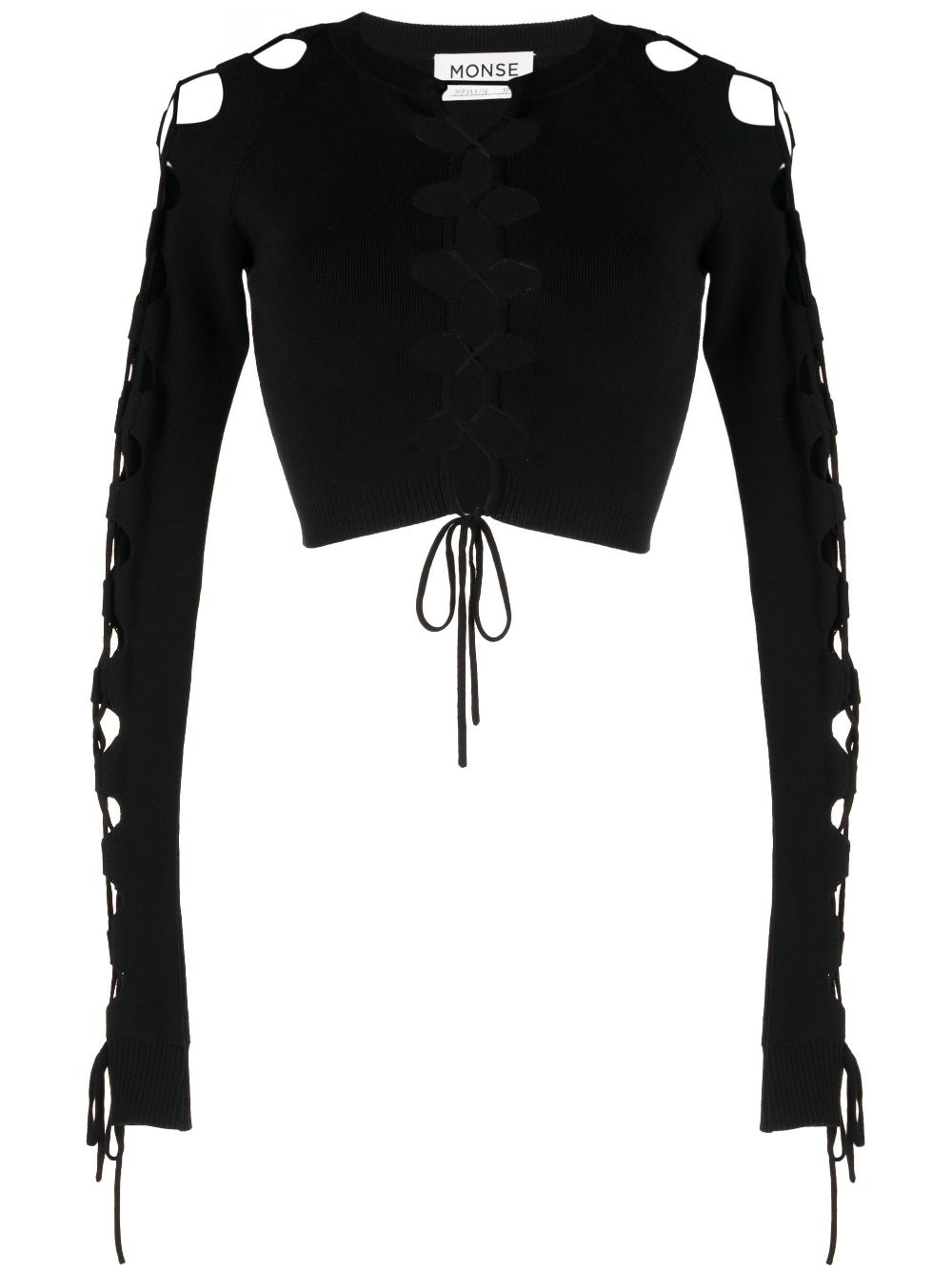 lace-up detail cropped jumper Highlights - Black - Cotton - Fine knit - Cut-out detailing - Front lace-up fastening - Lace-up long sleeves - Straight hem - Ribbed trim - Cropped Imported Composition Cotton 100% SIZE & FIT Model measurements Height 5 ft 10 in(1.77 m) Bust/Chest 31.49 in(80 cm) Hips 35.43 in(90 cm) Waist 25.19 in(64 cm) FittingInformation Designed for a close fit throughout Cropped in length Washing instructions Dry Clean Only