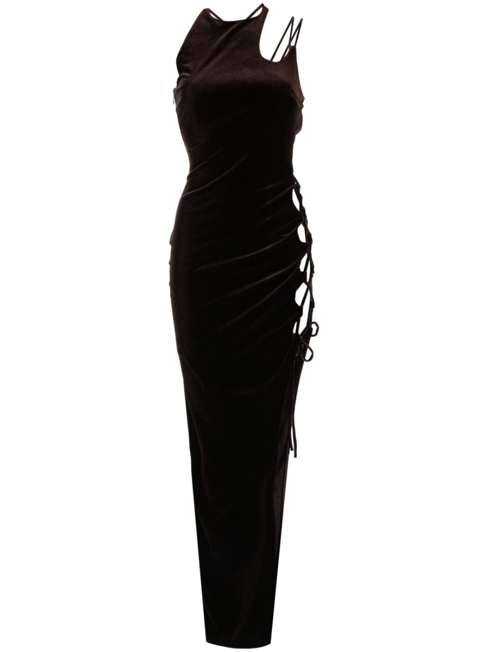 lace-up detailind velvet maxi dress Highlights - Cedar brown - Velvet effect - Rear lace-up fastening - Cut-out detailing - Asymmetric neck - Side slit - Long length Imported Composition Polyester 100% SIZE & FIT Model measurements Height 5 ft 10 in(1.77 m) Bust/Chest 31.49 in(80 cm) Hips 35.43 in(90 cm) Waist 25.19 in(64 cm) FittingInformation Designed for a close fit throughout The adjustable tie waist gives a more adaptable and personalised fit Washing instructions Dry Clean Only