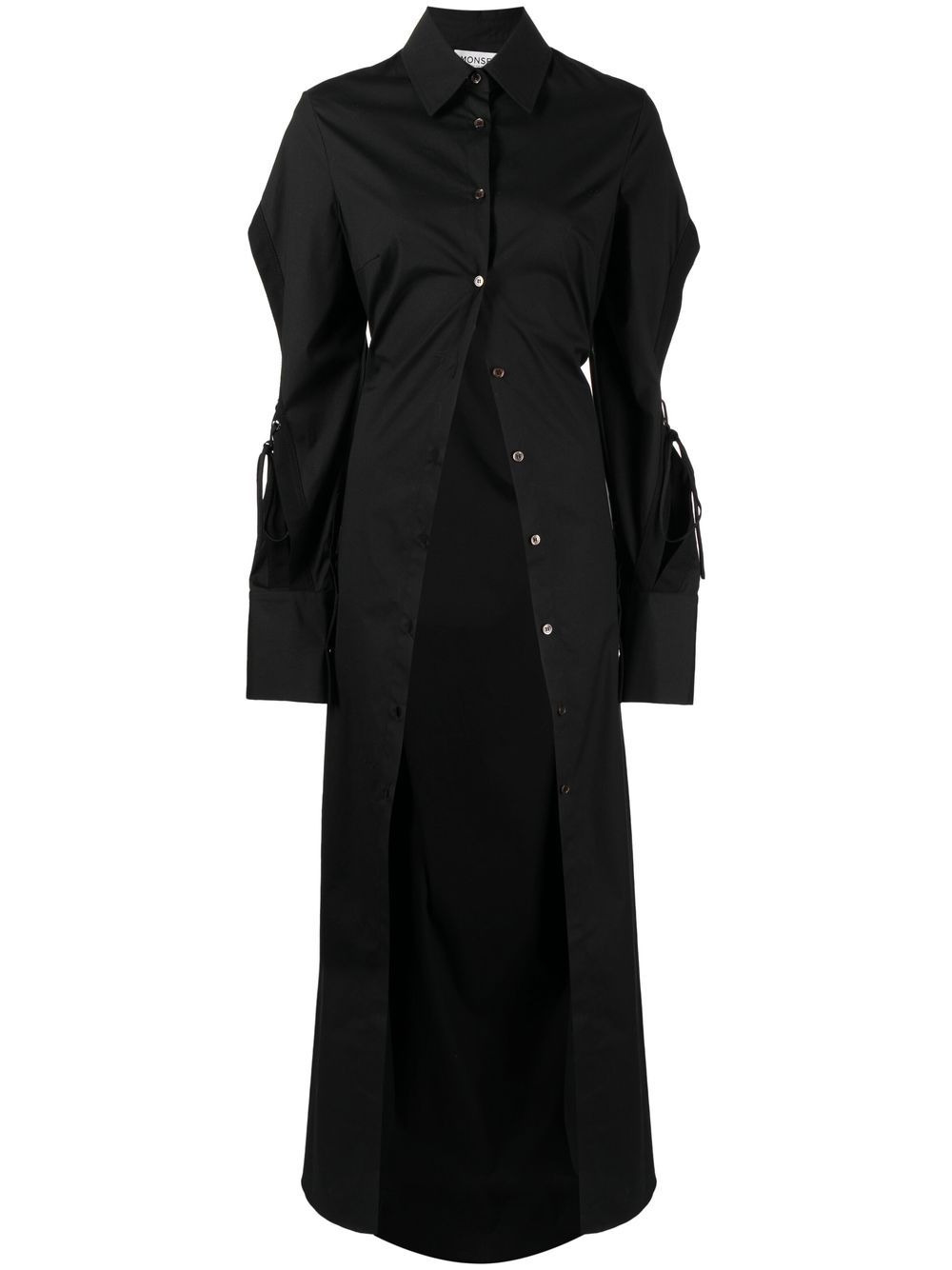 long cotton shirt black cotton cut-out detailing classic collar front button fastening long sleeves long length Imported Composition Cotton 100% SIZE & FIT Model measurements Height 5 ft 9 in(1.76 m) Bust/Chest 29.13 in(74 cm) Hips 33.07 in(84 cm) Waist 22.83 in(58 cm) Washing instructions Dry Clean Only