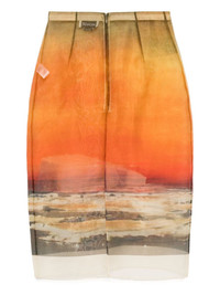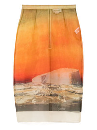 printed organza pencil skirt Highlights - Sunset orange - Concealed rear hook and zip fastening - Semi-sheer construction - Rear slit Imported Composition Silk 100%
