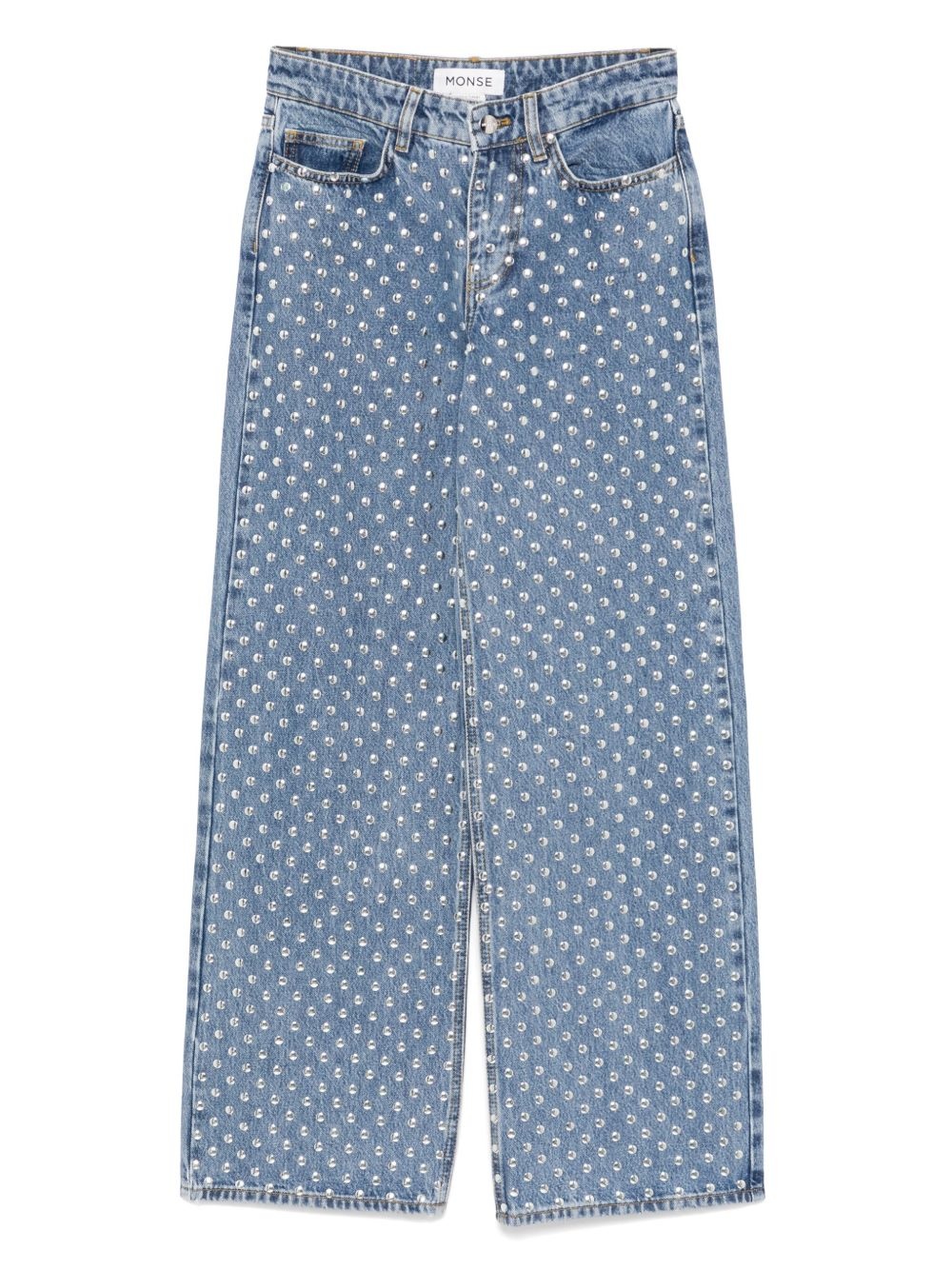 studded jeans Highlights - Indigo blue - Front button and zip fastening - Classic five pockets - Belt loops Imported Composition Lining: Cotton 65%, Polyester 35% Outer: Cotton 100% SIZE & FIT Model measurements Height 5 ft 9 in(1.76 m) Bust/Chest 31.1 in(79 cm) Hips 35.03 in(89 cm) Waist 24.4 in(62 cm) FittingInformation Designed with a wide leg cut, these jeans allow for a close fit at the waist and offer a loose and roomy fit over the leg Sturdy and hard-wearing, this denim piece offers no stretch