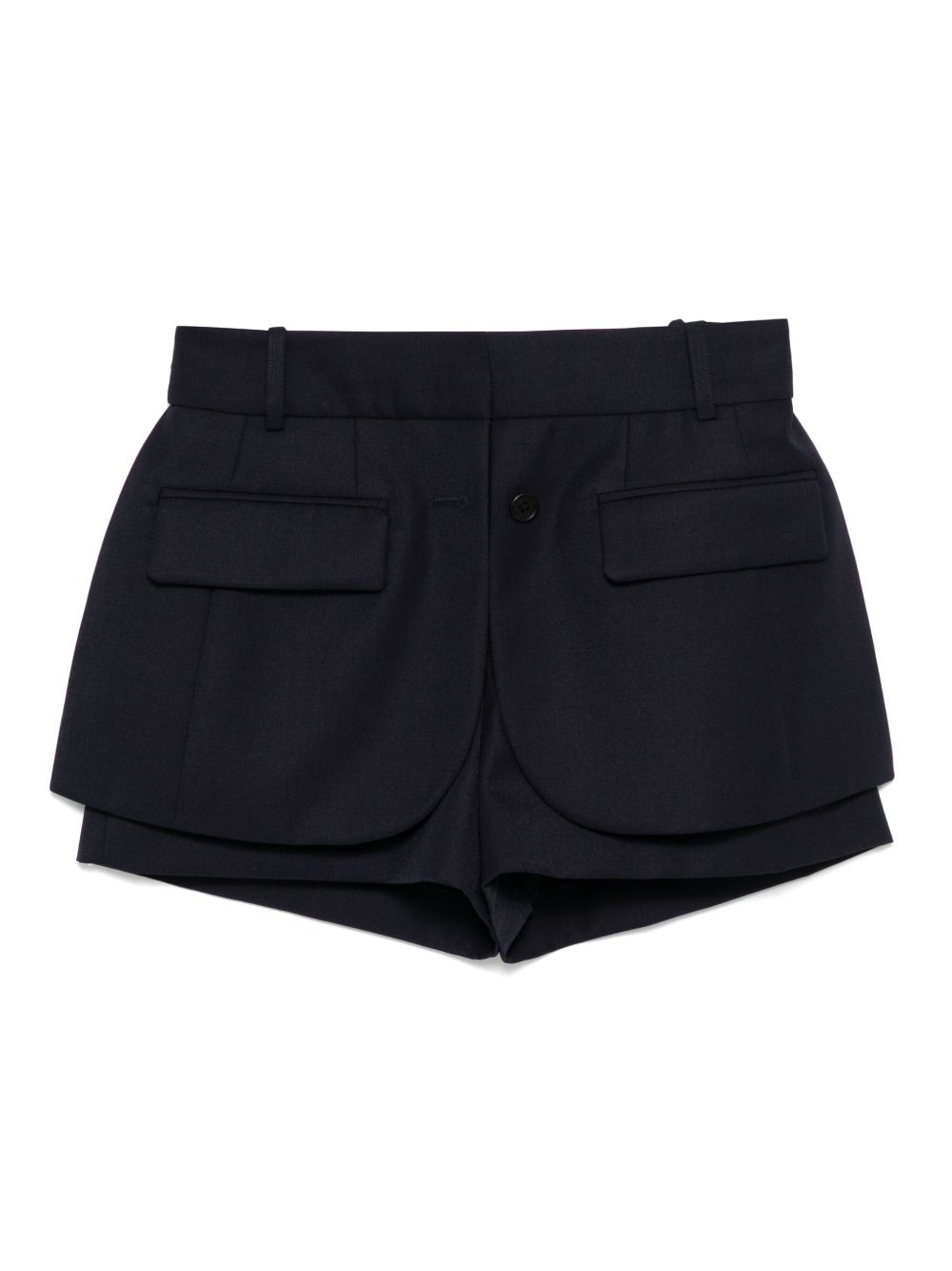 tailored shorts Highlights - Midnight blue - Concealed front fastening - Two side inset pockets - Belt loops - Layered design Made in United States Composition Polyester 55%, Wool 45% SIZE & FIT Model measurements Height 5 ft 9 in(1.76 m) Bust/Chest 31.1 in(79 cm) Hips 35.03 in(89 cm) Waist 24.4 in(62 cm) FittingInformation Designed for a loose fit, offering comfort and movement when worn Made from a midweight non-stretch fabric