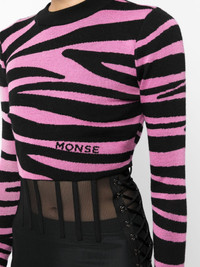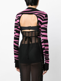 zebra-knit cropped jumper Highlights - Pink/black - Cotton - Intarsia-knit logo - Zebra print - Crew neck - Open back - Rear tie fastening - Long sleeves - Straight hem - Cropped Imported Composition Cotton 100% SIZE & FIT Model measurements Height 5 ft 10 in(1.77 m) Bust/Chest 31.49 in(80 cm) Hips 35.43 in(90 cm) Waist 25.19 in(64 cm) FittingInformation Designed for a close fit throughout The tie fastening gives an adaptable and personalised fit Washing instructions Dry Clean Only