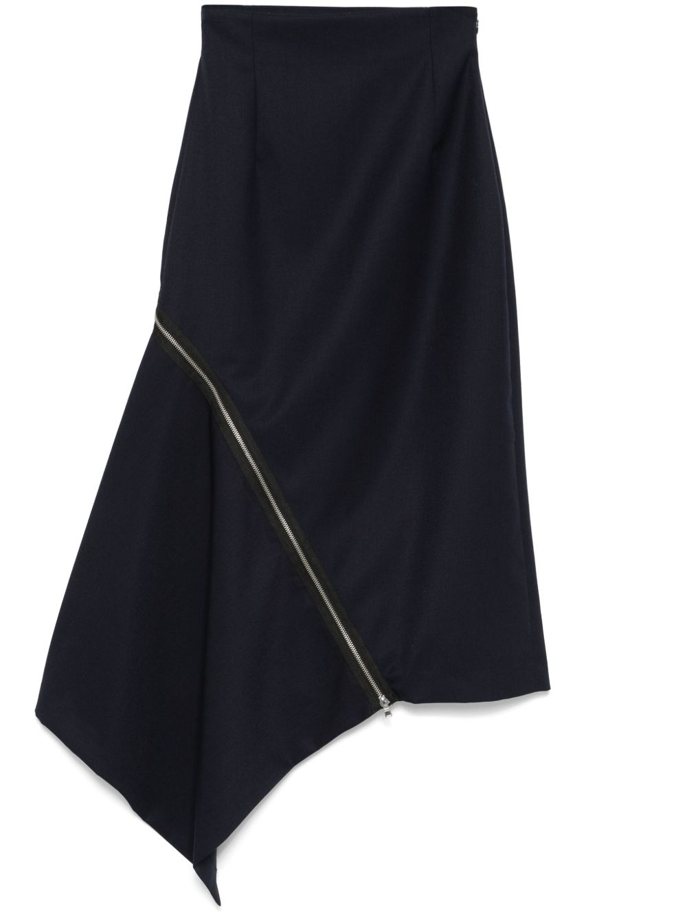 zip-detail midi skirt Highlights - Navy blue - Concealed side zip fastening - Fitted waistline - Asymmetric hem Made in United States Composition Polyester 55%, Wool 45%