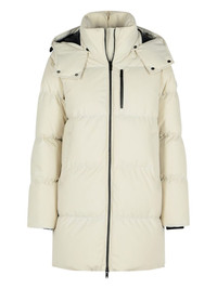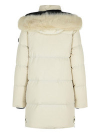 Chelia 3Q coat Highlights - White - Detachable hood - Faux-fur insert - Raised neck - Metal logo patch - Elastic inner cuffs Made in Italy Composition Outer: Polyester 100%, Polyamide 100% Lining: Down 100% Washing instructions Read Manufacturer Guidelines