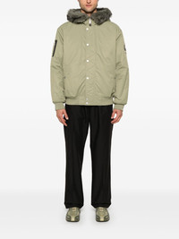 Denali bomber jacket Highlights - Sage green - Water-repellent - Wind-resistant - Textured finish - Front press-stud fastening - Concealed front zip fastening - Classic hood - Faux-fur detailing - Long sleeves - Logo patch at the sleeve - Ribbed cuffs and hem - Two side welt pockets Made in Italy Composition Lining: Recycled Polyester 100%, Polyester 95%, Elastane 5% Outer: Nylon 100% SIZE & FIT Model measurements Height 6 ft 2 in(1.87 m) Bust/Chest 37.79 in(96 cm) Hips 37.79 in(96 cm) Waist 30.31 in(77 cm) FittingInformation Designed to be unstructured, offering a loose fit throughout Made from a midweight fabric