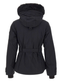 faux fur hooded belted jacket Highlights - Black - Faux fur trim - Removable hood - Two-way zip fastening - Adjustable cuffs - Waist belt - Logo patch Imported Composition Outer: Nylon 58%, Polyester 24%, Polyurethane 18% Lining: Duck Down 90%, Feather 10%