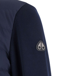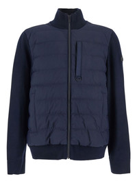 quilted knitted-sleeves padded jacket Highlights - Navy blue - Quilted panels - Ribbed-knit sleeves - Zip fastening - Stand collar - Logo patch Imported Composition Viscose 72%, Polyester 28% Washing instructions Read Manufacturer Guidelines