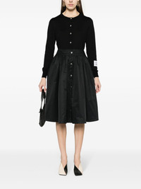 A-line pleated midi skirt Highlights - Black - Cotton blend - Gabardine weave - Pleat detailing - Logo patch to the rear - Rhinestone-embellished buttons - A-line - High waist - Front button fastening - Two side slit pockets - Straight hem - Mid-length Made in Italy Composition Cotton 65%, Polyamide 35% SIZE & FIT Model measurements Height 5 ft 11 in(1.8 m) Bust/Chest 31.49 in(80 cm) Hips 36.22 in(92 cm) Waist 25.59 in(65 cm) FittingInformation This midi-length skirt is intended to be worn high on the waist Made from a midweight non-stretch fabric This piece fits true to size – take your usual size Washing instructions Hand Wash