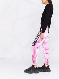 abstract-print branded track trousers fantasia pink cotton jersey fleece abstract pattern print logo print to the side elasticated waistband stretch-design slim cut two side slit pockets elasticated ankles Imported Composition Cotton 100% SIZE & FIT Model measurements Height 5 ft 10 in(1.77 m) Bust/Chest 32.67 in(83 cm) Hips 35.43 in(90 cm) Waist 23.62 in(60 cm) FittingInformation This piece fits true to size. We recommend you get your regular size Designed to be loose over the leg with a fitted waist and hem Made with a mid-weight fabric Washing instructions Hand Wash