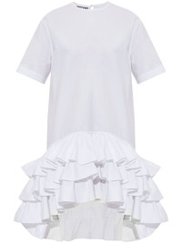 asymmetric ruffled dress Highlights - White - Crew neck - Keyhole detail to the rear - Short sleeves Made in Italy Composition Cotton 75%, Polyamide 25%