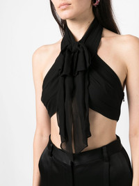 backless silk crop top Highlights - Black - Silk - Cropped - Backless - Halterneck - Front tie fastening - Concealed side zip fastening - Sleeveless Made in Italy Composition Silk 100% SIZE & FIT Model measurements Height 5 ft 10 in(1.78 m) Bust/Chest 31.49 in(80 cm) Hips 36.22 in(92 cm) Waist 25.59 in(65 cm) FittingInformation Designed for a close fit throughout Made from a lightweight non-stretch fabric This piece fits close in all sizes – take your usual size Washing instructions Dry Clean Only