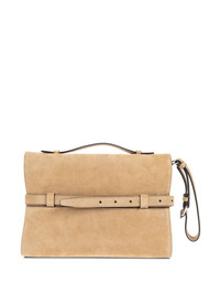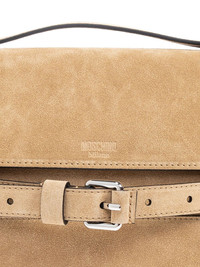 belt-detailing tote bag Highlights - Sand beige - Foldover top - Embossed logo to the front - Single flat top handle - Main compartment Made in Italy Composition Outer: Calf Suede 100% SIZE & FIT Measurement HEIGHT 8.26 in(21 cm) WIDTH 11.81 in(30 cm)