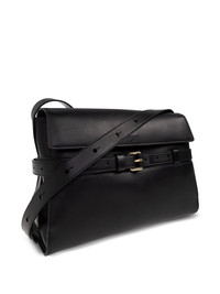 belted leather shoulder bag Highlights - Black - Buckle detail - Adjustable shoulder strap - Flap closure - Magnetic fastening Made in Italy Composition Outer: Calf Leather 100% SIZE & FIT Measurement HEIGHT 9.84 in(25 cm) WIDTH 13.77 in(35 cm)