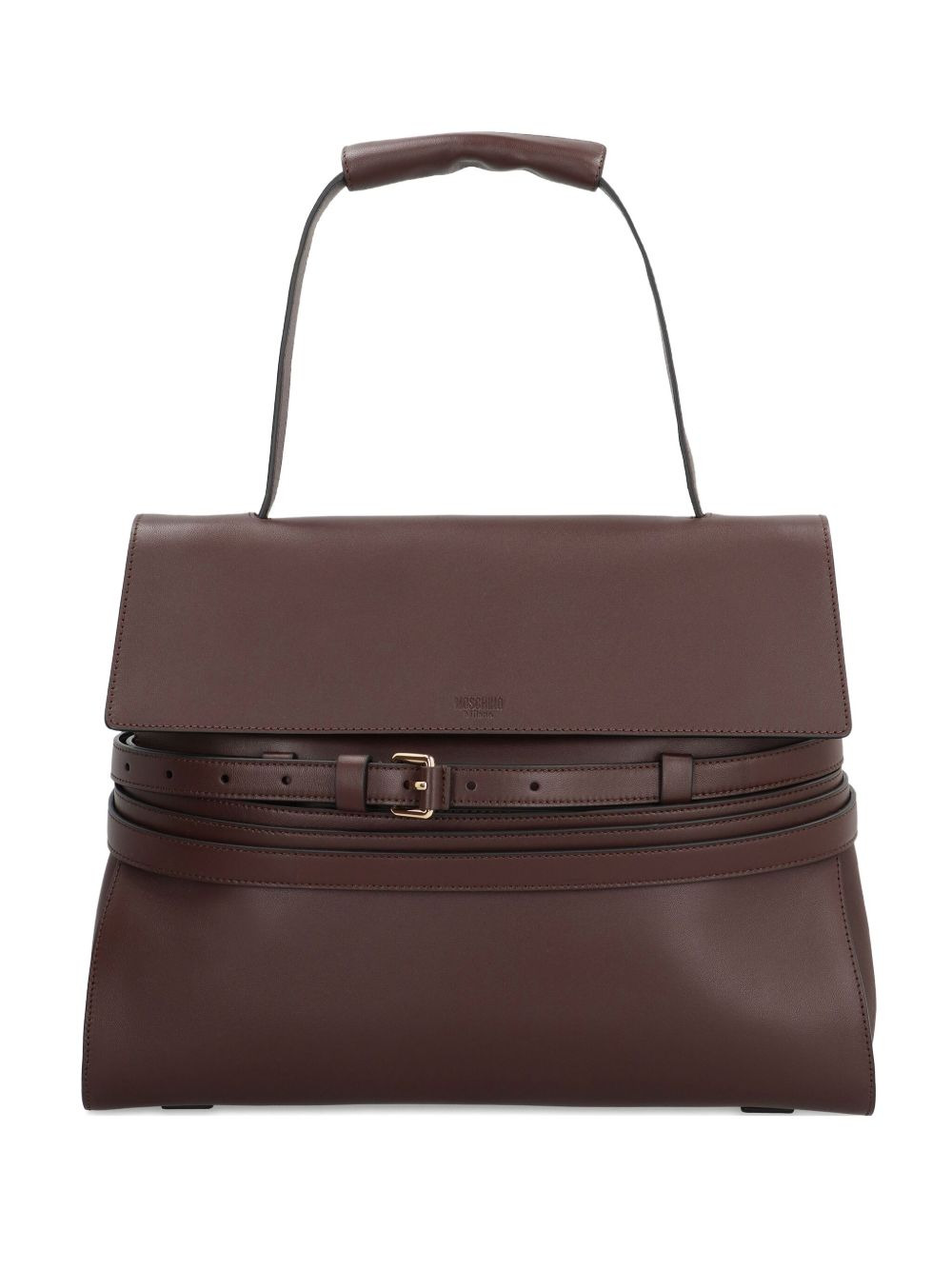 belted top-handle tote bag Highlights - Dark-brown - Leather construction - Top handle - Buckled belt detail - Double belt - Flap closure Made in Italy Composition Outer: Sheepskin 100% Lining: Cotton 100% SIZE & FIT Measurement DEPTH 5.51 in(14 cm) HEIGHT 11.81 in(30 cm) WIDTH 14.96 in(38 cm)