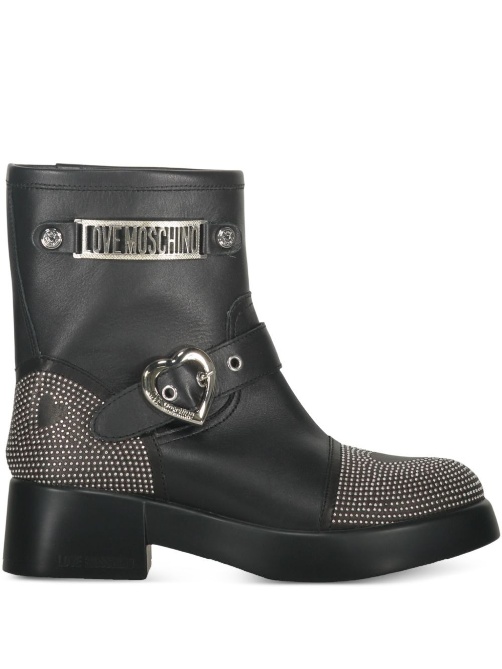 buckle-detailed studded ankle boots Highlights - Black - Calfskin leather - Studded embellishment - Buckle detail - Heart-shaped detail Made in Italy Composition Lining: CALFSKIN 100% Outer: CALFSKIN 100% Sole: Rubber 100%