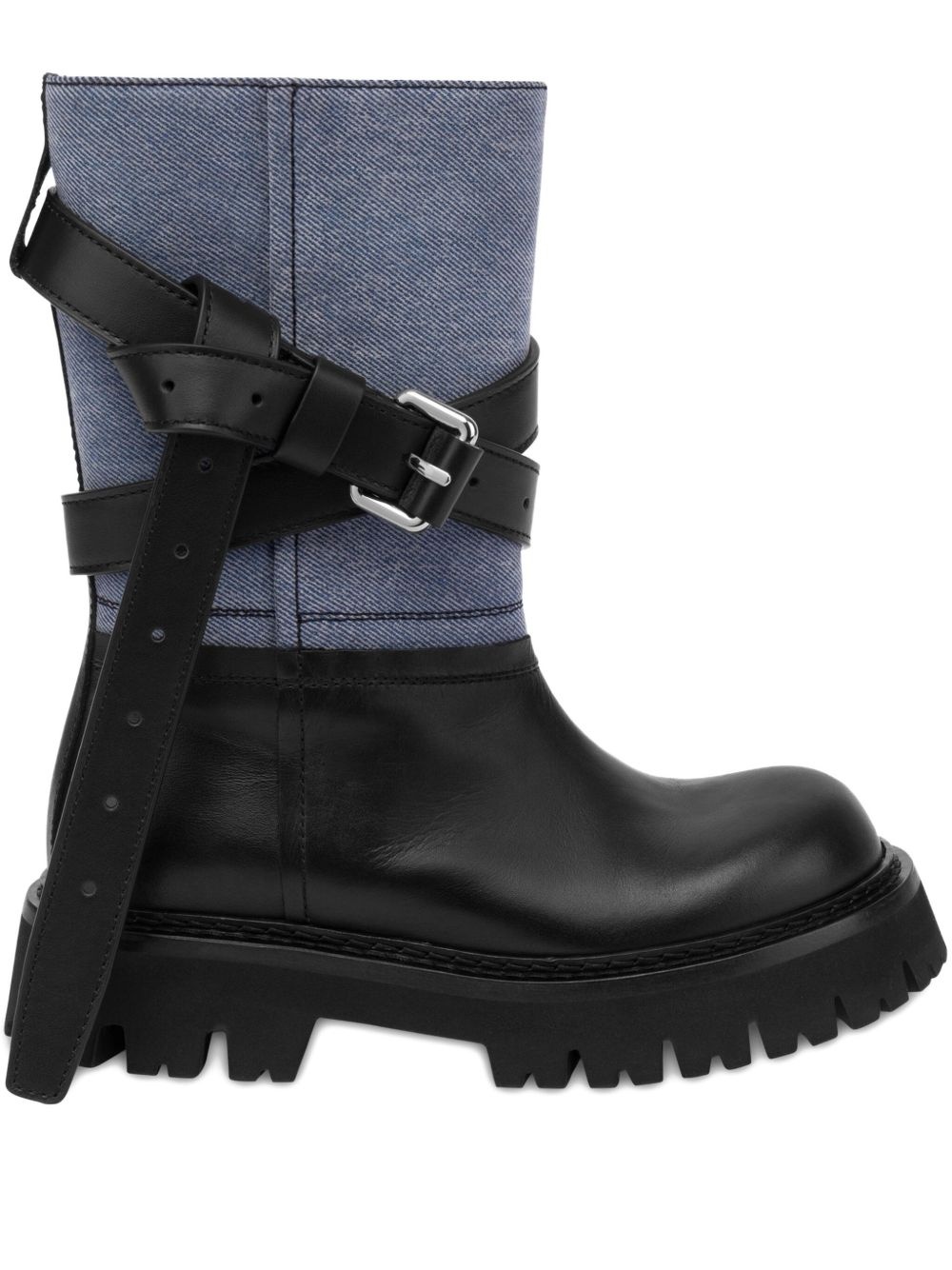 buckle-strap biker boots Highlights - Black - Buckle-strap fastening - Contrasting panel detail - Round toe - Ridged rubber sole Made in Italy Composition Outer: Calf Leather 60%, Cotton 30%, Viscose 10% Lining: Polyurethane 100% Sole: Rubber 100%