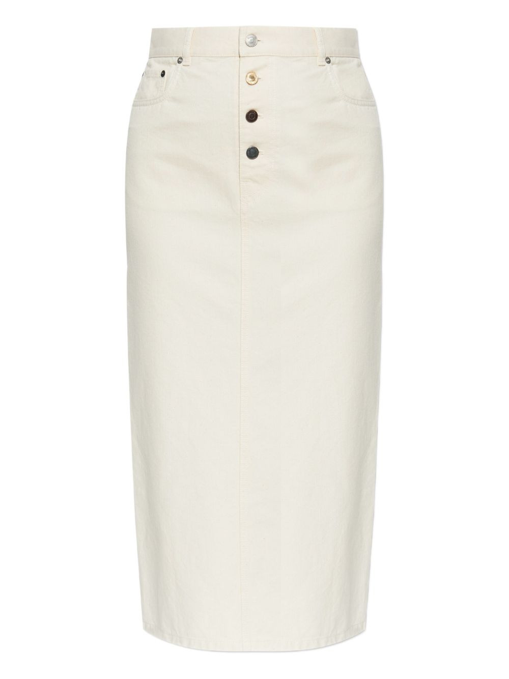 button-fastening denim skirt Highlights - Off-white - Denim fabric - Button closure - Straight hem - Welt pockets Made in Italy Composition Cotton 100% Washing instructions Read Manufacturer Guidelines
