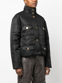 button-up puffer jacket Highlights - Black - Padded design - Gold-tone buttons - Stand-up collar - Front button fastening - Long sleeves - Four front flap pockets - Straight hem Made in Italy Composition Lining: Polyamide 58%, Cupro 52%, Acetate 48%, Polyester 42% Outer: Polyamide 100% SIZE & FIT Model measurements Height 5 ft 11 in(1.8 m) Bust/Chest 31.49 in(80 cm) Hips 36.61 in(93 cm) Waist 24.4 in(62 cm) FittingInformation Designed for a relaxed fit, this piece allows for comfort and movement when worn Made from a midweight non-stretch fabric This piece fits true to size – take your usual size