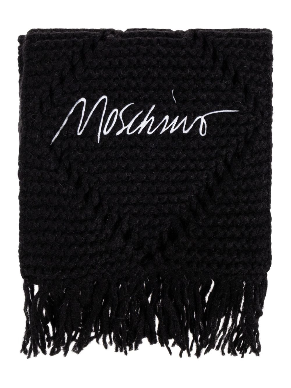 cable-knit fringed scarf Highlights - Black - Cable knit - Fringed edges - Embroidered logo Made in Italy Composition Alpaca 43%, Cotton 38%, Wool 19% SIZE & FIT Measurement LENGTH 82.67 in(210 cm) WIDTH 12.99 in(33 cm)