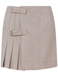checked mini skirt Highlights - Beige - Check pattern - Front buckle fastening - Thigh-length Made in Italy Composition Virgin Wool 100% SIZE & FIT Measurement HIPS 36.22 in(92 cm) LENGTH 16.14 in(41 cm) WAIST 28.34 in(72 cm)