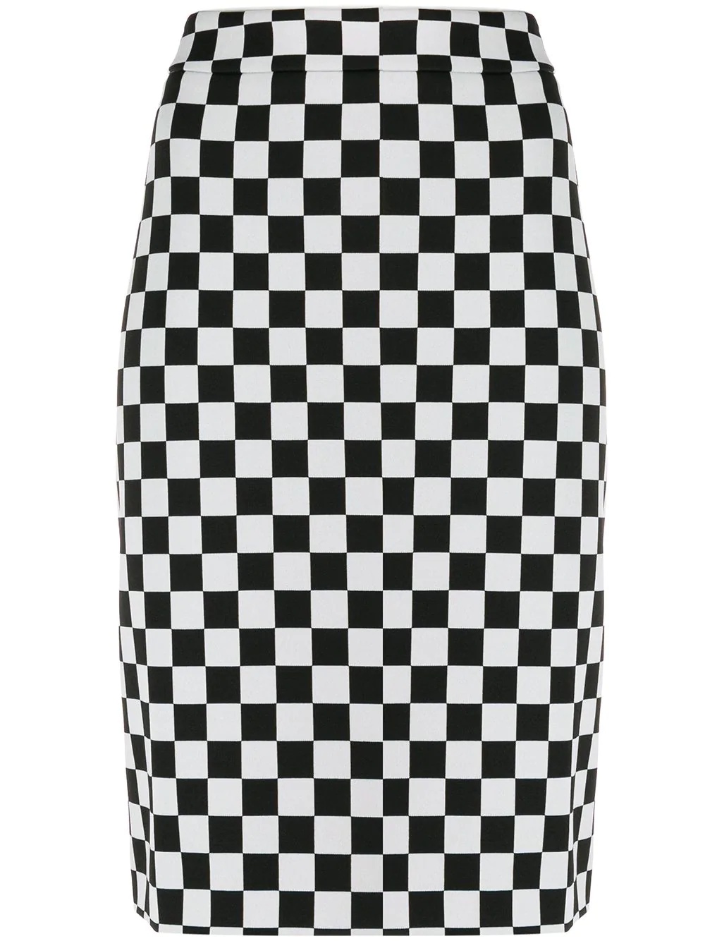 chess pencil skirt Black chess pencil skirt from Boutique Moschino featuring a high waist, fitted, a mid-length and a checkered pattern. Imported Composition Outer: Polyamide 97%, other fibers 3% Lining: Acetate 66%, Polyester 34% SIZE & FIT FittingInformation This piece fits true to size. We recommend you get your regular size Cut for a slim fit Washing instructions Hand Wash