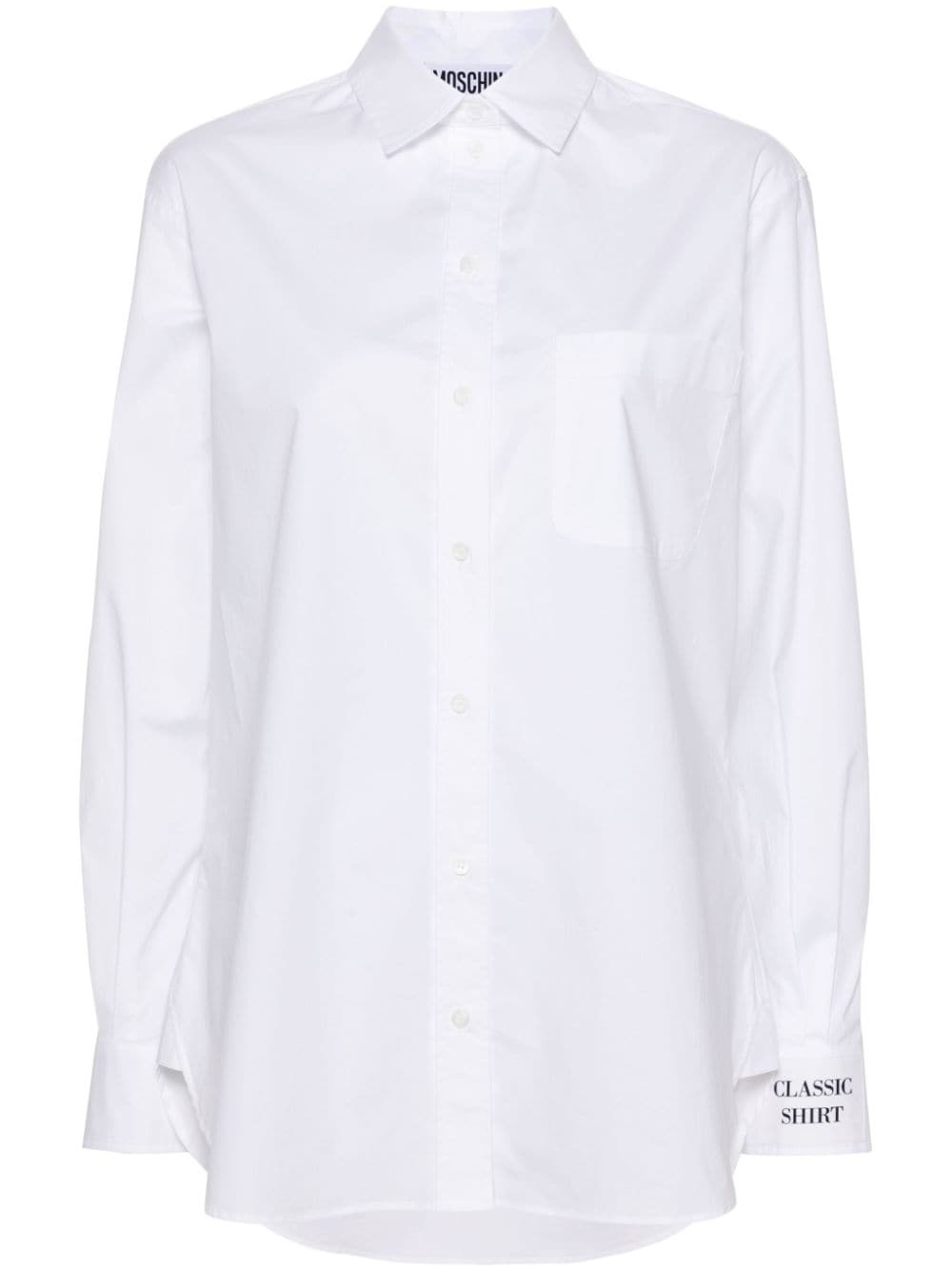 chest-pocket poplin shirt Highlights - White - Cotton blend - Poplin texture - Classic collar - Front button fastening - Drop shoulder - Long sleeves with buttoned cuffs - Chest patch pocket - Curved hem Made in Italy Composition Cotton 94%, Elastane 6% SIZE & FIT Model measurements Height 5 ft 10 in(1.78 m) Bust/Chest 31.49 in(80 cm) Hips 35.03 in(89 cm) Waist 23.62 in(60 cm) FittingInformation Designed for a relaxed fit, this piece allows for comfort and movement when worn Made from a midweight stretch fabric, this piece offers elasticity and flexibility when worn This piece fits true to size – take your usual size