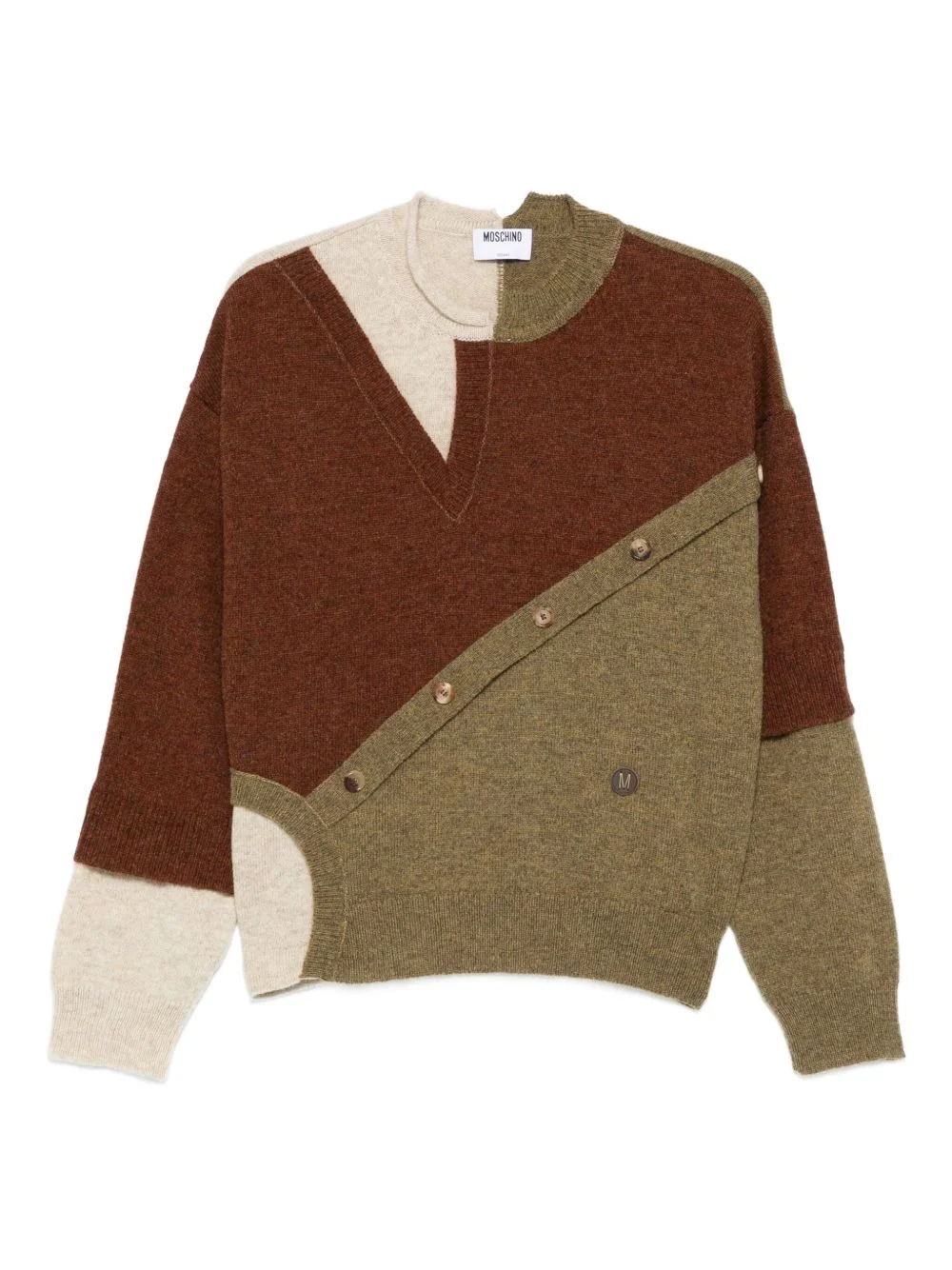 colour-block button-detail sweater Highlights - Green - Beige and brown panels - Diagonal button detailing - Crew neck - Wool Made in Italy Composition Virgin Wool 100% SIZE & FIT Model measurements Height 5 ft 10 in(1.77 m) Bust/Chest 33.07 in(84 cm) Hips 37 in(94 cm) Waist 24.8 in(63 cm) Washing instructions Dry Clean Only
