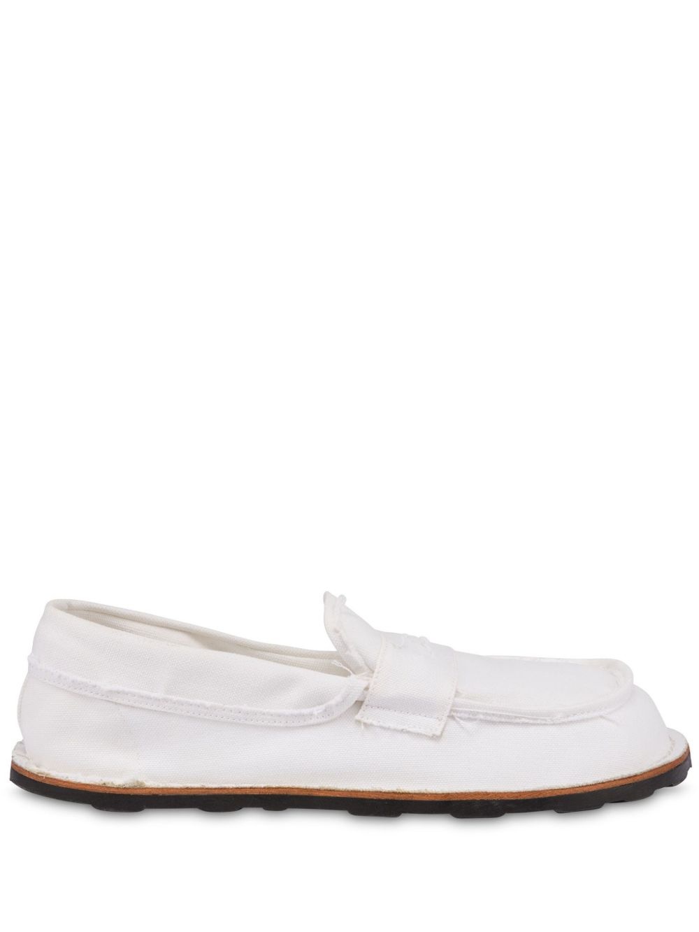 cotton loafers Highlights - White - Cotton - Slip-on style - Raw-cut edge - Flat rubber sole Imported Composition Lining: Fabric 100% Sole: Rubber 100% Outer: Cotton 100%