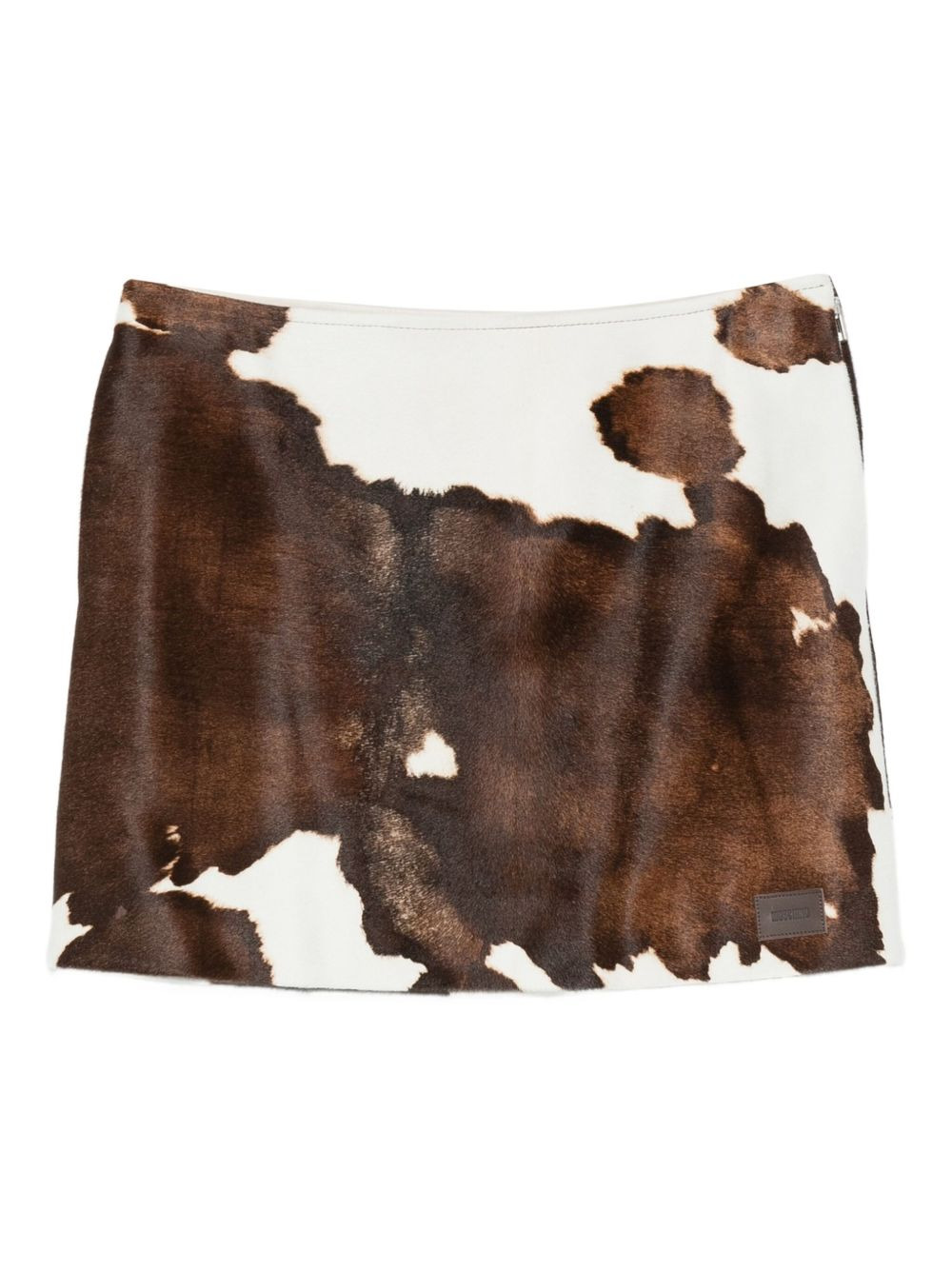 cow-print mini skirt Highlights - Brown and white - Cow print - A-line shape - Mini length - High waist Imported Composition Lining: Acetate 60%, Cupro 40% Outer: Sheepskin 100%, Calf Hair 100% SIZE & FIT Model measurements Height 5 ft 9 in(1.75 m) Bust/Chest 32.67 in(83 cm) Hips 36.22 in(92 cm) Waist 24.8 in(63 cm) Measurement HIPS 37.79 in(96 cm) LENGTH 15.35 in(39 cm) WAIST 31.49 in(80 cm) Washing instructions Dry Clean Only