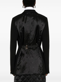 crepe blazer Highlights - Black - Front button fastening - Button-fastening chest pocket - Two side flap pockets - American rear vent Made in Italy Composition Lining: Acetate 83%, Silk 17% Outer: Viscose 100%, Polyester 88%, Elastane 12% SIZE & FIT Model measurements Height 5 ft 10 in(1.77 m) Bust/Chest 32.28 in(82 cm) Hips 35.03 in(89 cm) Waist 25.19 in(64 cm) FittingInformation Designed for a relaxed fit, this piece allows for comfort and movement when worn The adjustable tabs allow for fitted preferences Made from a midweight fabric