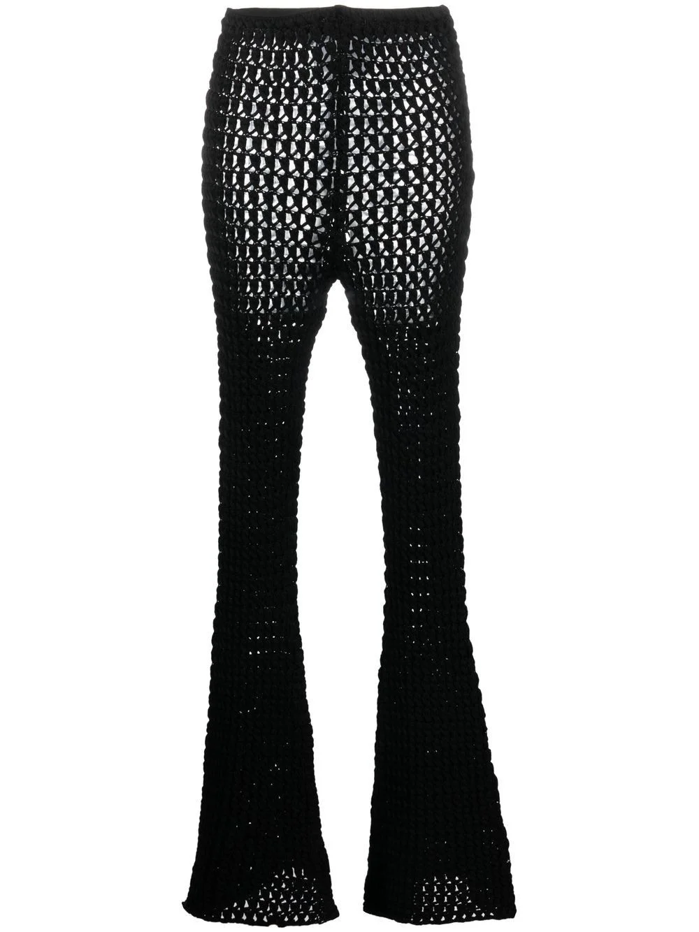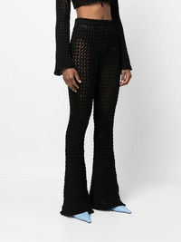 crochet-knit flared trousers
