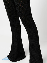 crochet-knit flared trousers black cotton crochet knit flared design high waist floor-length Made in Italy Composition Cotton 100%, Viscose 75%, Polyamide 25% SIZE & FIT Model measurements Height 5 ft 11 in(1.8 m) Bust/Chest 31.49 in(80 cm) Hips 36.61 in(93 cm) Waist 24.4 in(62 cm) FittingInformation This piece fits true to size. We recommend you get your regular size Designed to be fitted at the waist and through the thigh, loose from the knee Made with a heavyweight fabric Washing instructions Dry Clean Only