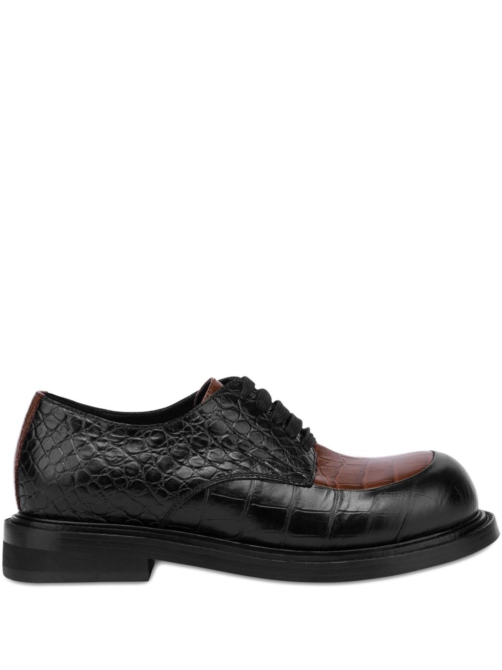 crocodile-embossed derby shoes Highlights - Black - Contrasting brown panels - Lace-up closure - Rounded toe - Textured croco pattern Imported Composition Sole: Calf Leather 100% Lining: Calf Leather 100% Outer: Calf Leather 100%