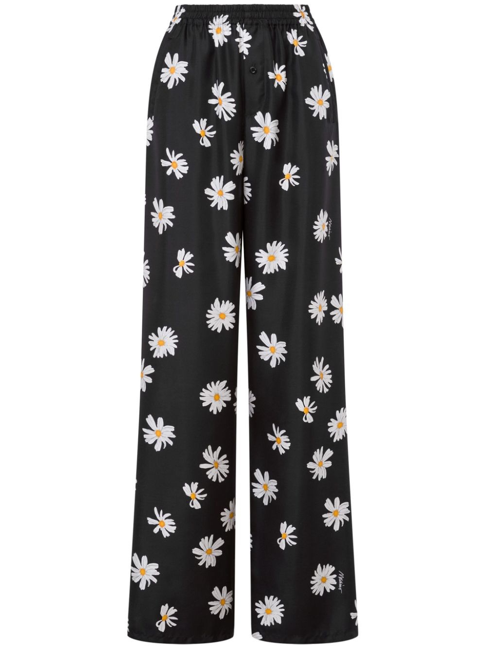 daisy-print trousers Highlights - Black - Front button fastening - Two side slash pockets - Elasticated waistband Made in Italy Composition Silk 100%