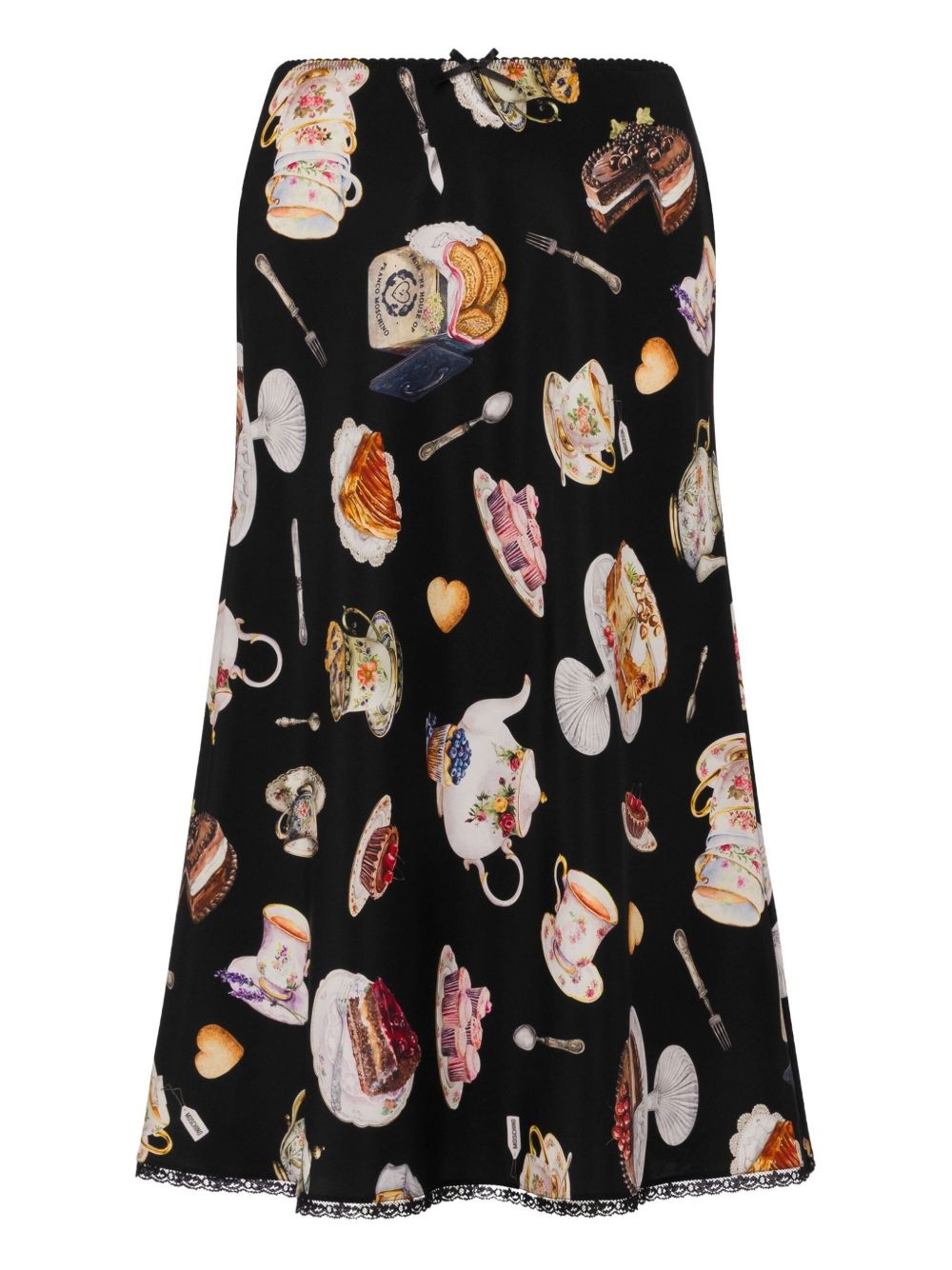 dessert-print midi skirt Highlights - Black - Dessert illustration print - Mid length - Elasticated waistband Imported Composition Silk 100% Washing instructions Dry Clean Only