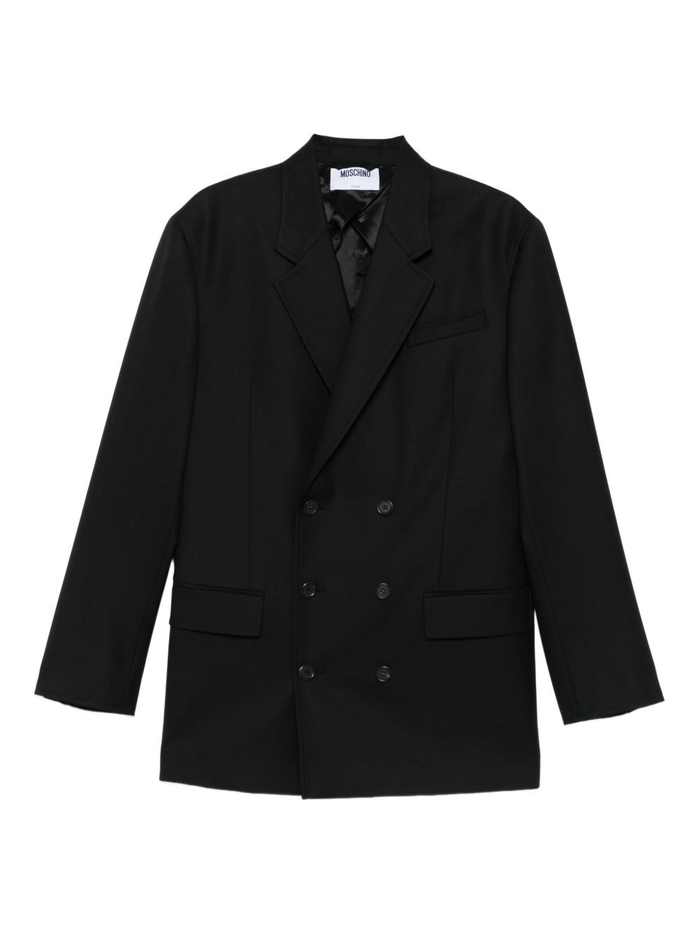 double-breasted acetate jacket Highlights - Black - Double-breasted closure - Acetate material - Long sleeves - Rear logo pattern - Adjustable buckle Made in Italy Composition Lining: Acetate 60%, Cupro 40% Outer: Virgin Wool 100%, Viscose 100% Washing instructions Dry Clean Only